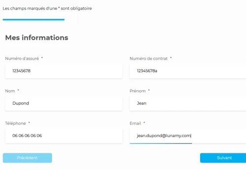 Votre assureur nous transmet instantanément vos informations personnelles et celles de votre bien en renseignant simplement le numéro de contrat du bien sinistré ou votre numéro d'assuré