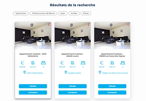 Les critères de recherche sont déja renseignés en fonction des carractéristiques de votre logement sinistré pour vous présenter les biens similaires à proximité
